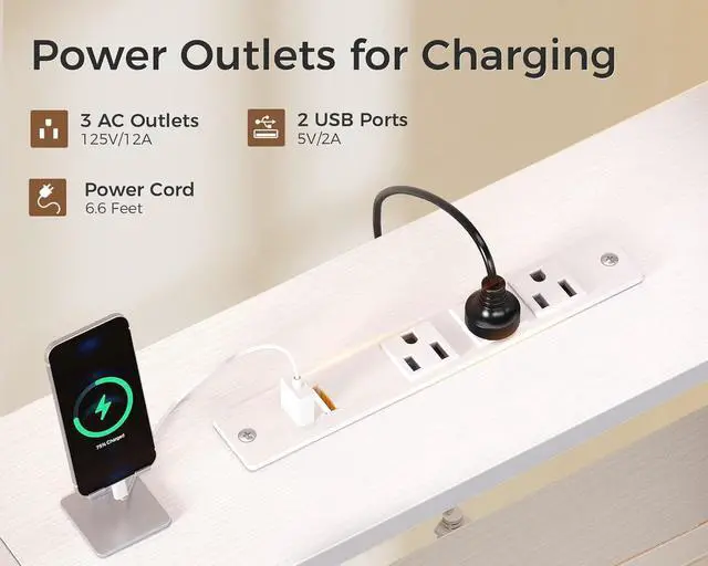 USB Charging Ports & Power OutletsEquipped with 3 power outlets and 2 USB charging ports, the 2 person gaming desk can simultaneously power 5 electronic devices like smartphones, gaming gear and Bluetooth devices when you are working, studying or playing games. Let this dual desk make your life more convenient.