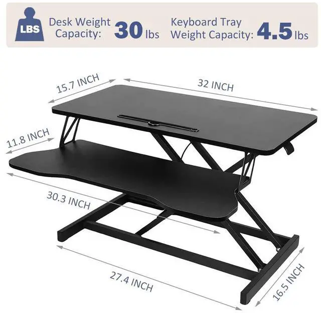 STURDY STRUCTUREErgonomic design standing desk. The solid structure keeps your desk riser steady and the maximum weight hold up to 30 lbs.