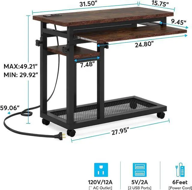 Height Adjustable for Multitude of Uses: 30~49 height range for changing between sitting to standing. Whether you are looking for a compact computer desk for small space, teen students room, college dorm, or high standing desk for your home office, a snack tray/sofa side table for watching TV, a laptop or tablet stand for relaxing in bed, this adjustable rolling table fits the bills well