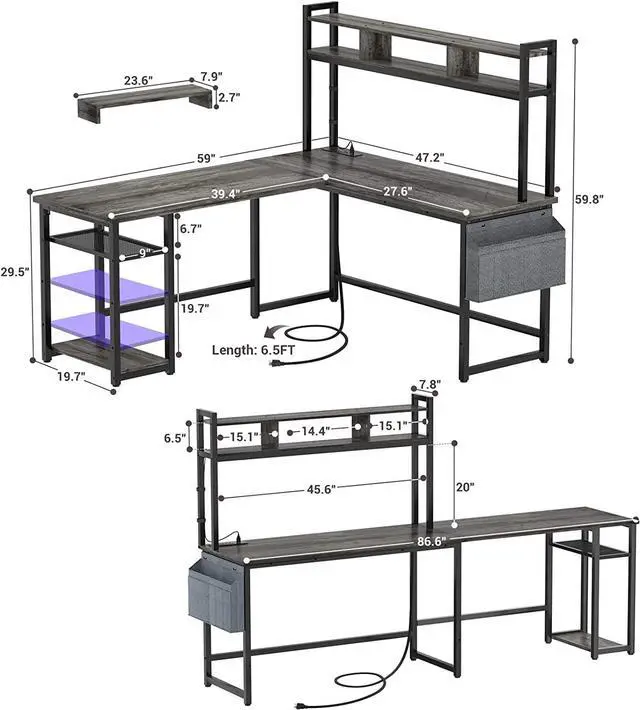 The L-shaped computer desk is built in 3 power outlets and 2 USB charging ports and for your phone, headset, tablet, computer, gaming gear with fast charging.