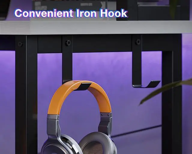 The cpu stand on the left can store your computer tower and notebooks, office supplies, green plants.The iron hook on the right is designed to hang your headphone. Both of the two sides meet your storage needs in home or office.