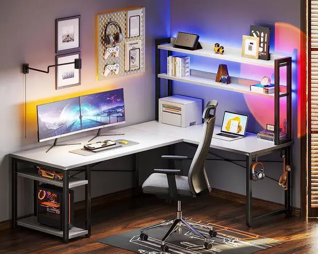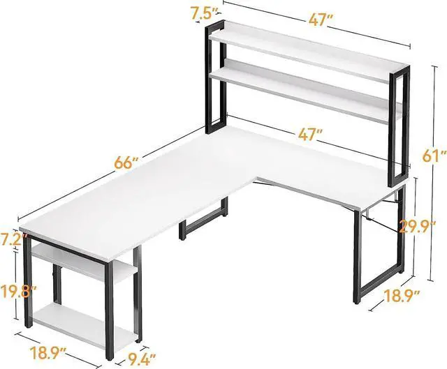 This l shaped desk provides enough space for your computers, laptops, keyboard, books, CPU stand and daily equipments. You will get plenty of room for storage and sitting.