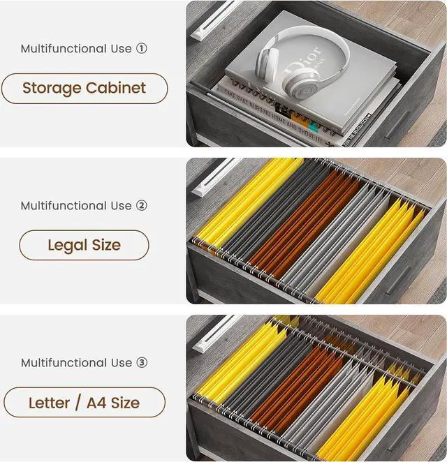 Ample Storage SpaceComing with a file drawer, printer cabinet and 2 tier storage shelves, with powerful storage space. File cabinet can hold letter /A4/ legal size files. This solid constructed L shaped computer desk could hold printers, scanners, fax machines and any other office machines, keeps printer or scanner within easy reach of your desk to free up work space. CPU stand protects the host from moisture and dust. This L shaped computer desk is economic, meets different storage need.