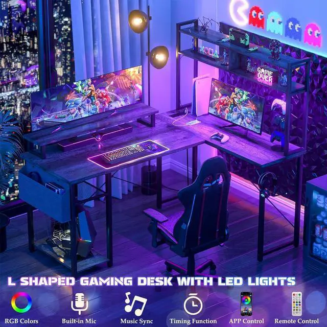 This corner desk with hutch offers a moveable monitor stand that elevates your line of sight, keeps you maintaining proper sitting posture and protect your cervical and spinal health, it could also be placed at the storage side to create a storage shelf. Extra Storage Bag and headphone hooks let you say goodbye to the mess from desktop.