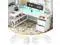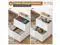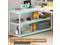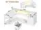 Computer desk comes with 2 fabric file drawers, a power outlet with a switch, 2 under desk bookshelves, LED lights, 2 headphone hooks, and an extra long desk monitor shelf that can hold 2-3 monitors. The office desk could hold 2-3 desktop computers and 1 printer. An ideal desk for small rooms to create excellent home office space.