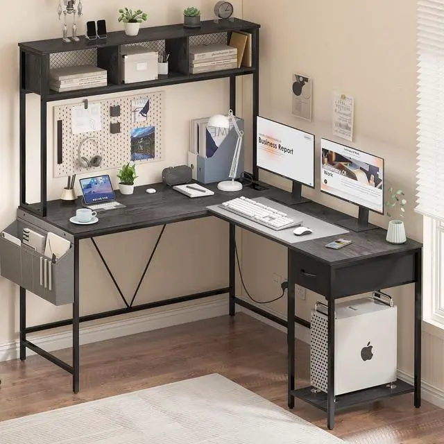 Reversible L Shape DeskLooking for versatile home office desks that can adapt to your space and usage needs? Look no further than our l shaped desk with drawers! With a reversible design, the top hutch of the l desk can be fixed on the left or right side according to your specific needs, to maximize your limited space which is fairly suited for corner spaces.