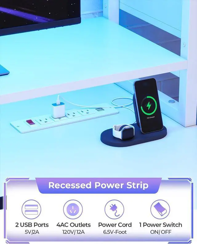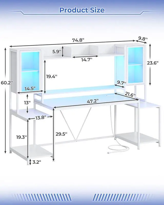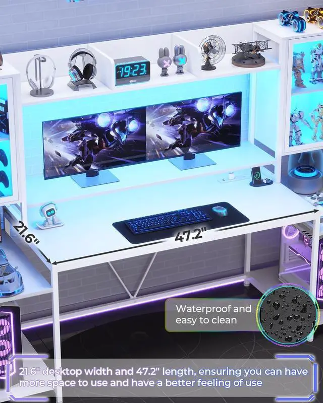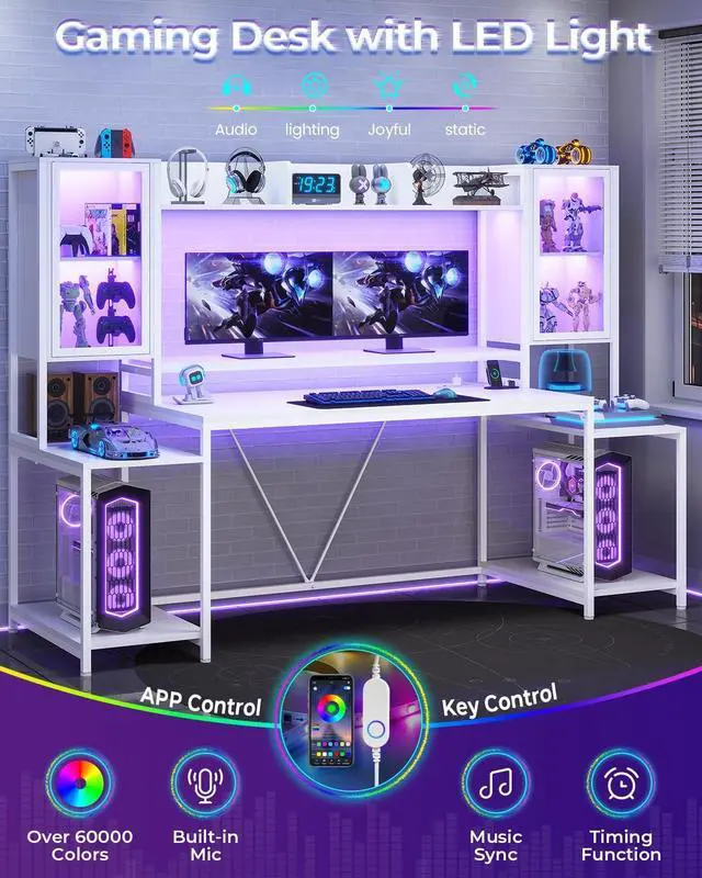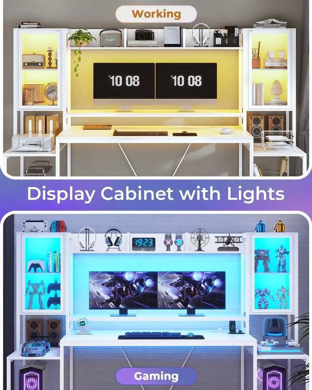 The hutch's three compartments and two premium acrylic display cabinets offer ample storage space. You can neatly arrange gaming controllers, headphones, or even small game collectibles, keeping your gaming equipment organized and easily accessible. Additionally, the bottom shelve provide extra storage space for larger devices such as gaming consoles or computer towers, ensuring a tidy and orderly gaming area.