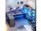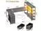 L shaped gaming desk comes with a power outlet, LED lights, storage shelves, fabric drawers, an computer desk that can hold 2 monitors, storage shelves, and a CPU stand. The gaming desk could hold 2 desktop computers and 1 notebook computer. An ideal desk for small rooms to create excellent home office space.