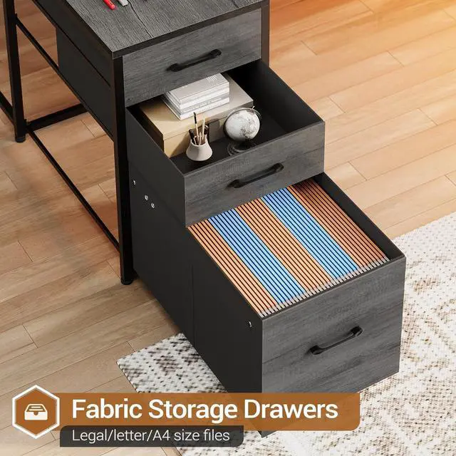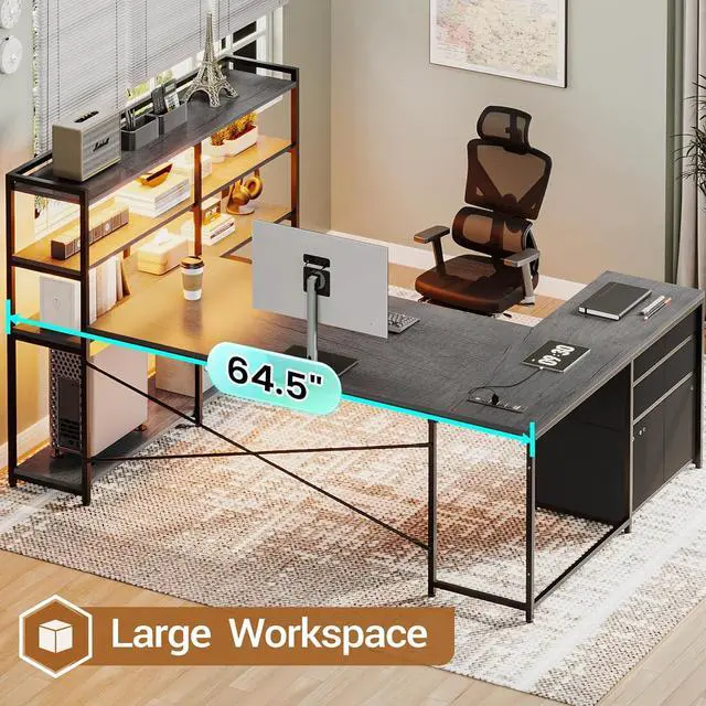 Don't know how to store various sizes of documents? Don't worry, the L shaped desk with a file drawer can hold 3 sizes of files - Legal/Letter/A4 and a box drawer can place home or office items. The 5-layer storage shelves can be for full-size printers, files, books, or other items, leaving large space for writing, studying, and other home office desk activities.