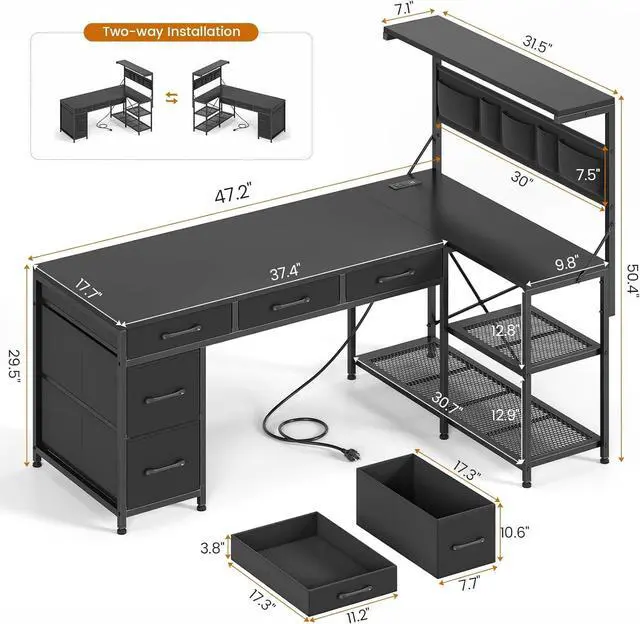 4-tier storage shelves can be placed on either the left or right side, allowing you to customize the l shaped gaming desk to suit your needs. An ideal corner gaming desk for small rooms or limited spaces to create excellent home office space.