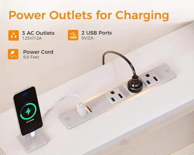 Equipped with 3 power outlets and 2 USB charging ports, the office desk can simultaneously power 5 electronic devices like smartphones, gaming gear and Bluetooth devices when you are working, studying or playing games. Let this home office desk make your life more convenient.