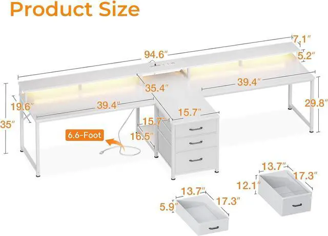 The 94" double computer desk features an extra-long double workstation, providing a spacious and comfortable space for two people to work, study and entertain collaboratively while maintaining their individual space. This desk for two can suit in office, study and bedroom with its functionality and simple, practical design. Enjoy a new level of productivity and pleasant interaction with our dual table!