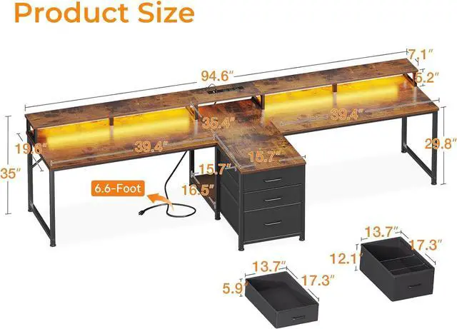 The 94" double computer desk features an extra-long double workstation, providing a spacious and comfortable space for two people to work, study and entertain collaboratively while maintaining their individual space. This desk for two can suit in office, study and bedroom with its functionality and simple, practical design. Enjoy a new level of productivity and pleasant interaction with our dual table!