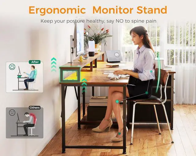 Equipped with 3 power outlets and 2 USB charging ports, the office desk can simultaneously power 5 electronic devices like smartphones, gaming gear and Bluetooth devices when you are working, studying or playing games. Let this home office desk make your life more convenient.