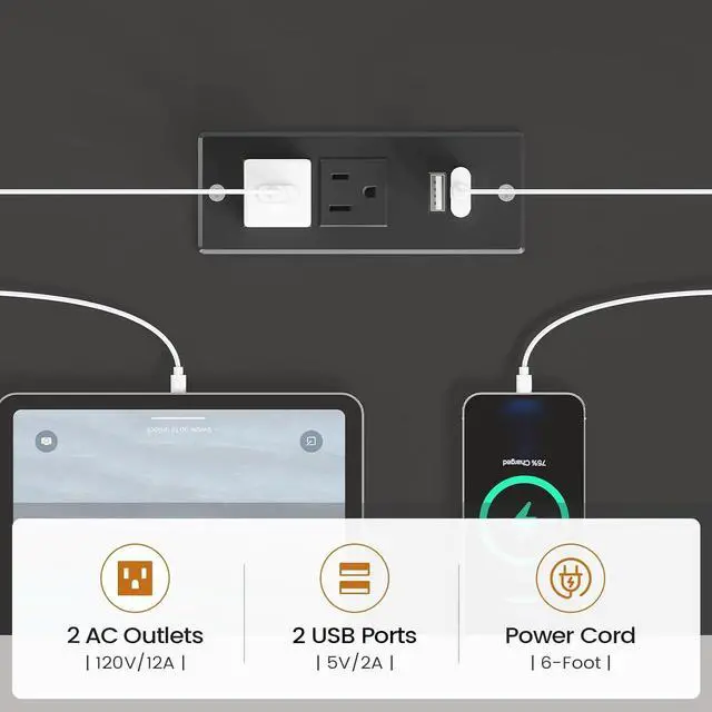 This computer desk has a built-in power supply with 2 AC power sockets and 2 USB charging ports, which can easily charge 4 devices such as tablets, printers, and mobile phones at the same time.