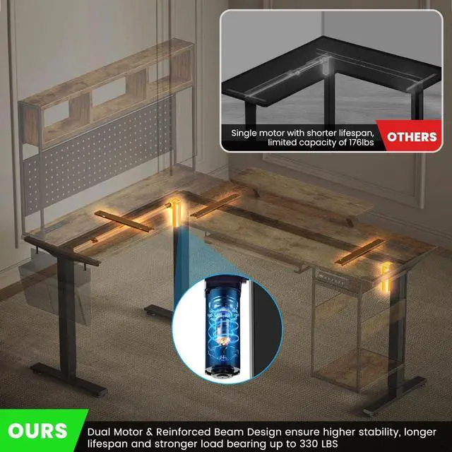 STURDY DESK FRAME WITH REINFORCED BEAM: Are you still worried about a wobbly desk? FLYCITY adjustable stand up desk frame uses high carbon steel material and cold rolled steel design for sturdiness. The solid wooden desktop and the dual motor with reinforced beam design ensure maximum stability, longer lifespan and stronger load bearing up to 330 LBS. The table legs go through 50, 000 lift tests and still stable enough without any abnormality of daily use.