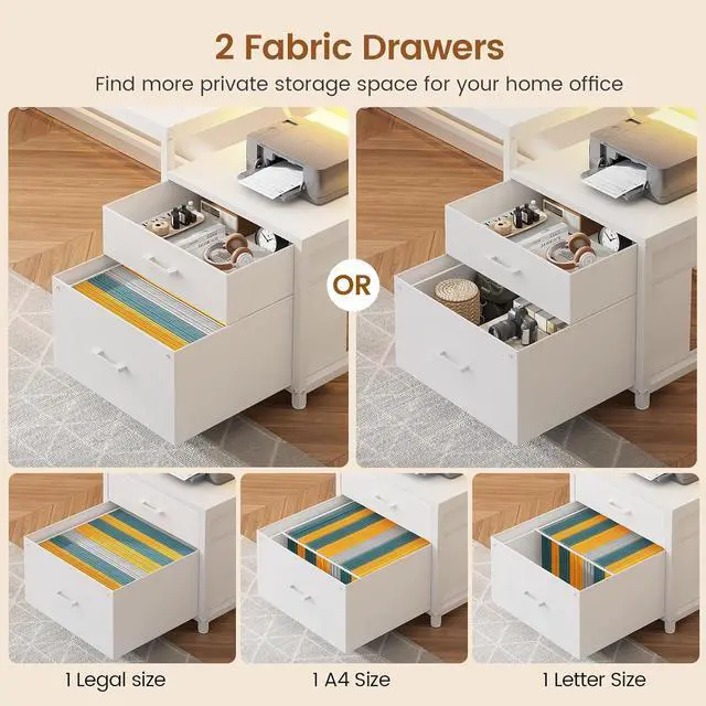 Ample StorageComputer gaming desk comes with display cabinet, provides ample space to display your decorations, photo albums, game figure, and so on. 2 Drawers are made of breathable high-quality fabric, lightweight and easy to install while providing sufficient storage space.