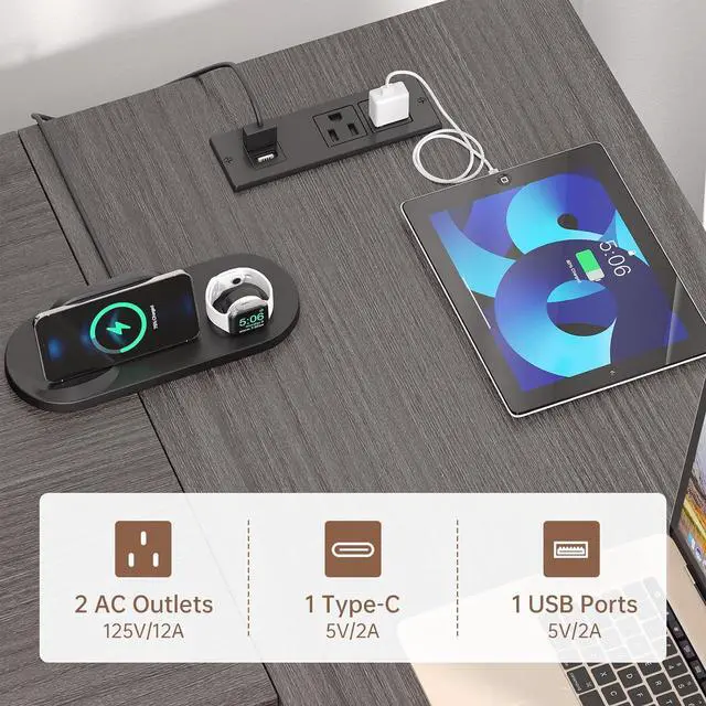 Built-In Power Convenience: The office desk is equipped with 2 AC outlets and 2 USB ports for easy charging of devices, perfect for a clutter-free workspace.While playing computer games or working from home, you can effortlessly and conveniently charge your smart phone, gaming equipment, or Bluetooth devices.