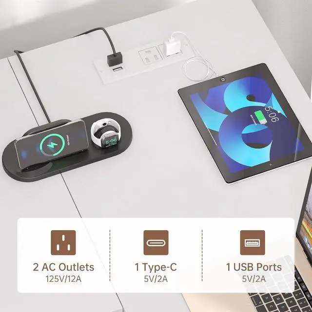 Built-In Power Convenience: The office desk is equipped with 2 AC outlets and 2 USB ports for easy charging of devices, perfect for a clutter-free workspace.While playing computer games or working from home, you can effortlessly and conveniently charge your smart phone, gaming equipment, or Bluetooth devices.