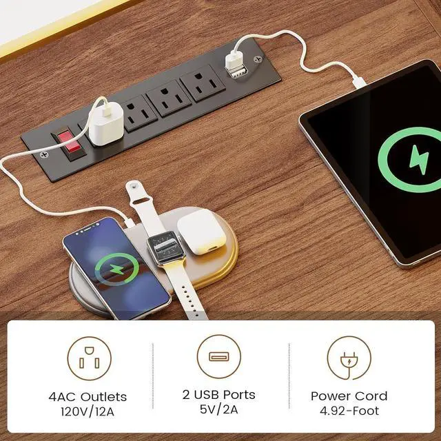 Durable Corner Gaming Desk with Built-in Power Engineered for stability, this corner gaming desk features an ultra-sturdy 8cm wood frame and 1.5cm thick panels for shake-free use. It confidently holds 300 lbs and includes a built-in power strip with 4 outlets, 2 USB ports, and a master switch. Scratch and water resistance ensure long-lasting durability for your gaming and work needs.