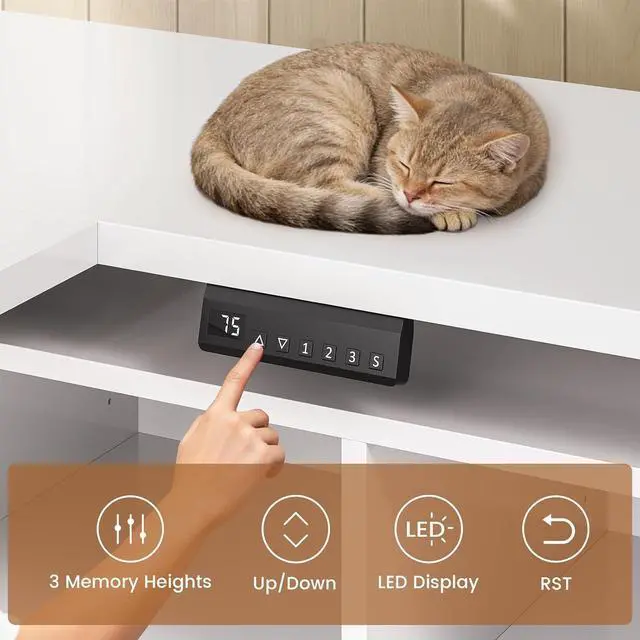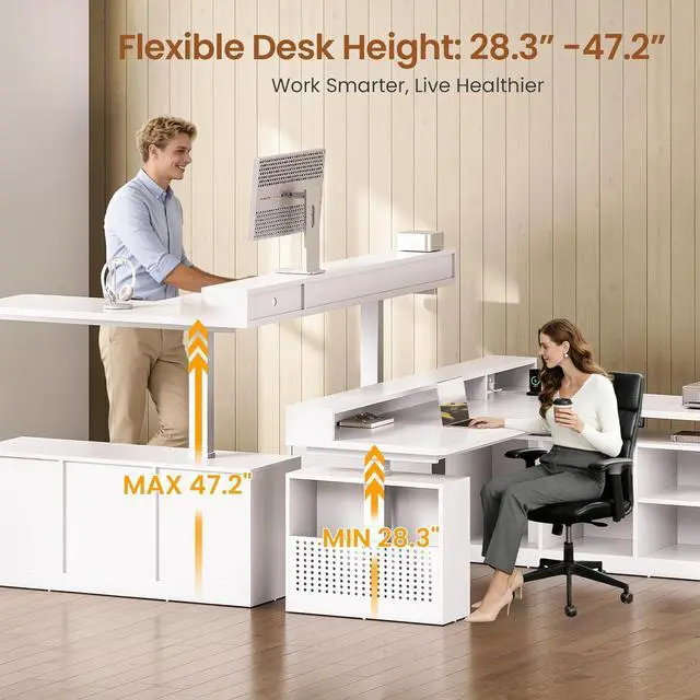 Adjustable Height Standing DeskThe adjustable computer desk with storage height adjusts infinitely from 28.3 to 47 inches, with a memory function to save 3 favorite settings. It helps you find the perfect height for better posture, while the high-quality motor ensures durability, quiet operation, and a longer lifespan.