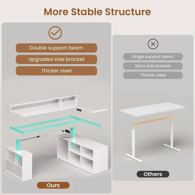 Superior QualityThis electric standing desk features a powerful lifting system that ensures smooth and quiet operation. Its powerful motor can support up to 220 pounds (approximately 100 kg), with a smooth lifting speed of 25 mm/s and a noise level below 30 decibels.The desktop of this standing desk is made of FSC-certified wood.