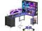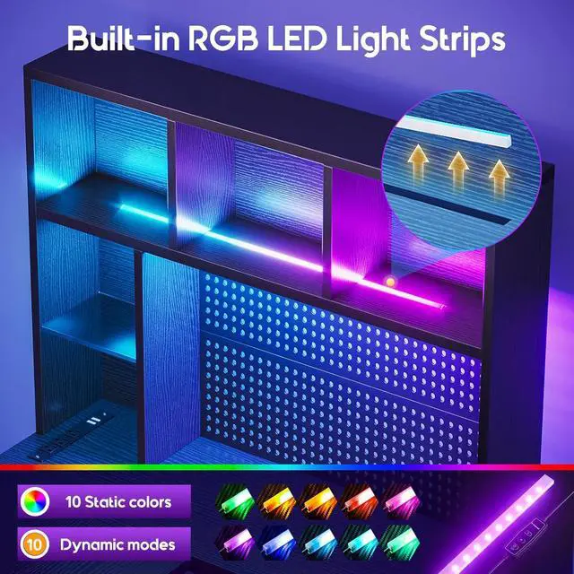 Integrated LED Light Strip & Built-In Power OutletsIntegrated LED light strip is seamlessly built into the l shaped gaming desk, delivering clean ambient lighting without exposed wires or external add-ons. Built-in power outlets and USB ports provide convenient access for monitors, PC, consoles and everyday devices, ideal for a modern gaming desk setup.