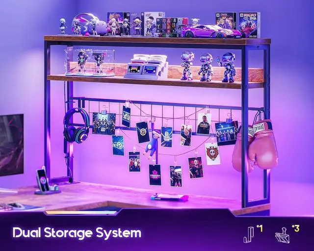 Immersive RGB Lighting Equipped with detachable LED light strips offering 10 colors, 10 dynamic modes, and 8 brightness levels, this l shaped gaming desk lets you create the perfect gaming atmosphere or a calm, focused workspace"