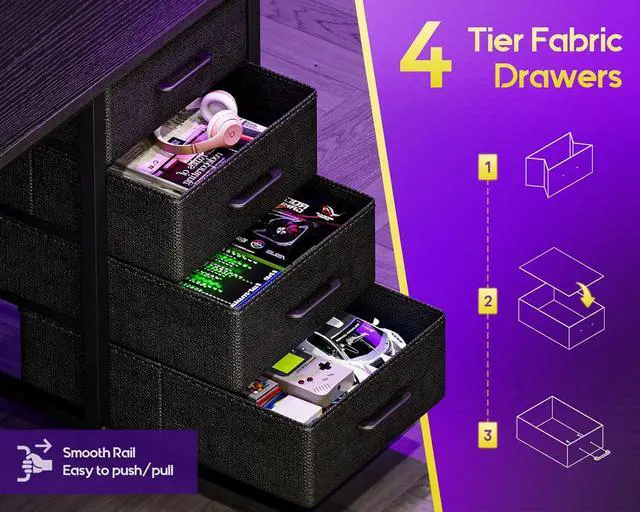4 Spacious Fabric DrawersKeep your workspace tidy with 4 deep fabric drawers. This desk with smooth-gliding drawers offers excellent dust-free storage for files, supplies, and personal items, drastically reducing desktop clutter, perfect for focused work or study sessions at home