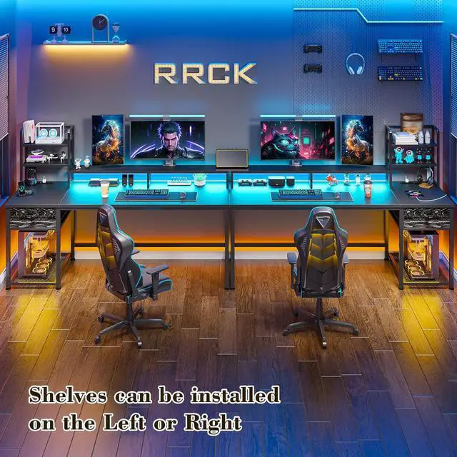 Black Gaming Desk with Shelves - Perfect for Gaming,Streaming,and Home Office