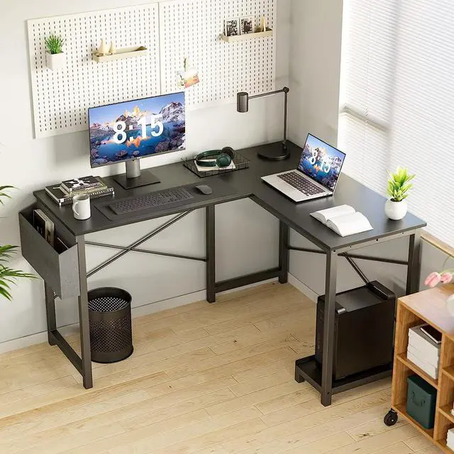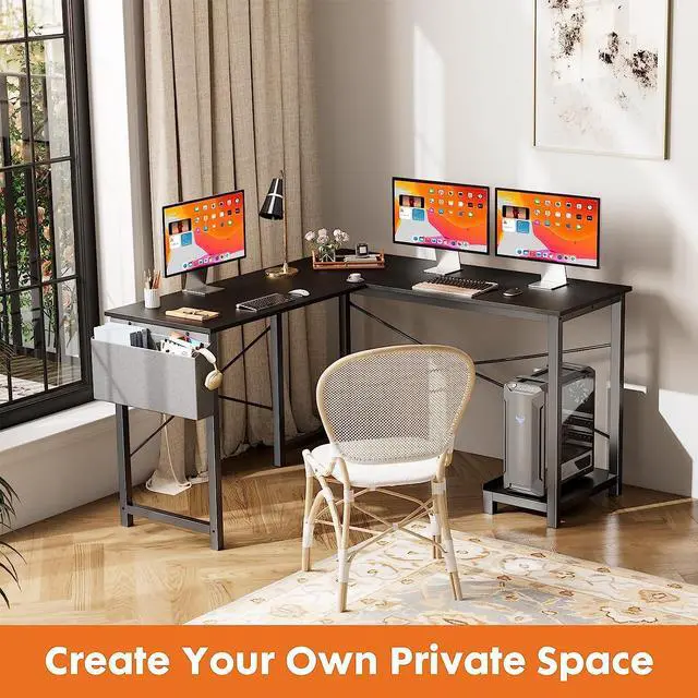 Create Your Game Zone! This L shaped computer desk offers the flexibility to create a customized gaming or work space. With its modular design, it can be easily assembled in either an L-shaped or U-shaped layout, allowing users to maximize their workspace according to their preferences and needs. Whether you' re a gamer looking to optimize your gaming setup or a professional seeking an efficient office workstation, this desk offers the versatility to accommodate your specific requirements.