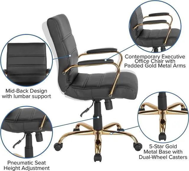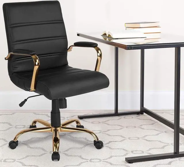 Give yourself and office a boost with this stylish mid-back black LeatherSoft desk chair. This chair is easy on the eyes and offers plenty of comfort with its thickly padded seat and waterfall seat edge.