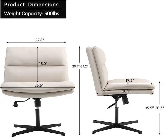 Quality MaterialsThis armless office chair has wide and soft seat. EMIAH computer chair applies BIFMA & SGS certified 3-class gas lift, painted cross-shaped aluminum base with a capacity of up to 300 lbs. Premium PU leather is waterproof and easy to clean, wear and durable. Each supporting foot is attached with a non-slip natural rubber feet pad to prevent scratching and slipping.