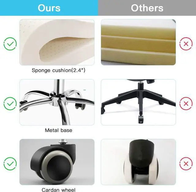 COMFORTABLE The backrest and seat are padded with thick high elastic sponge ( 2.4 " )covered with soft PU leather, which is made especially for your all-day comfort and support.