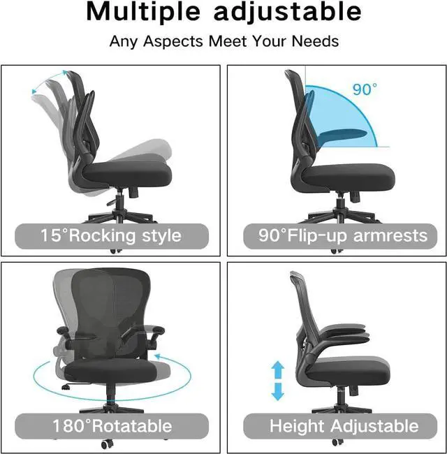 Ergonomic Office Chair: Hbada office chair adopts ergonomic design, the desk chair fully supports the right side, waist, hip, elbow. The ergonomic C-shaped office chair back fits the back at all times, supports the pressure on the spine, and does not feel tired after sitting for a long time. Ergonomic chairs can improve your sitting posture and bring comfort to your office chair during busy work.