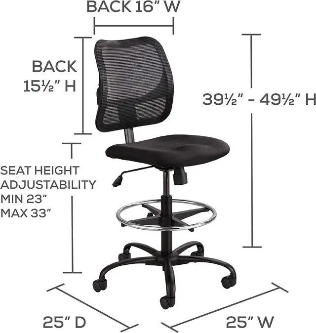 COOL MESH COMFORT. Safco Vue Mesh Extended-Height Chair offers the ultimate in comfort with an ergonomic, breathable mesh back to keep you cool and comfortable, adjustable waterfall edge seat and chrome footring.