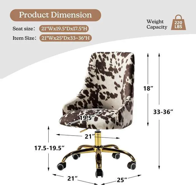 ADJUSTABLE FUNCTIONS: This Home Office Desk Chair allows you to customize comfort with its height-adjustable mechanism, 360°swivel base, and 360°rotating casters. Load-bearing to 220 lbs. Well-made and durable.