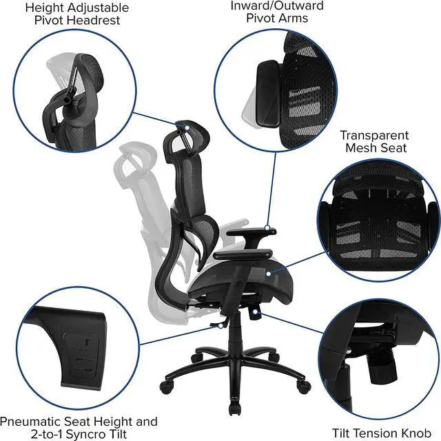 Feel the difference in comfort on this ergonomic office chair fusing style and function effortlessly. Healthy seating with curved lumbar to support the natural curve of your spine and a 2-to-1 recline ratio keep your feet relatively close to the floor.