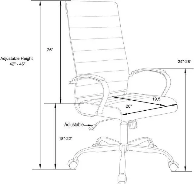 Padded seat and back for all-day comfort Ergonomic and lightweight design High-Back for extra support Seat and back with heavy-duty stitching Lumbar Support