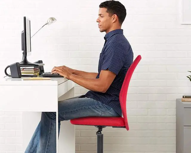 SWIVEL ADJUSTABLE HEIGHT: 360 degree swivel armless office chair height adjustable 4.7 inch (12 cm). Overall Height (top to the floor) 35.6 40.4 ( 90.4 102.6 cm); Seat Height (seat cushion to floor) 18.3 - 23 ( 46.5 - 58.4 cm): ERGONOMIC OFFICE CHAIRprovides lumbar support to reduce back pain causing by long time sitting. Mesh covers both the padded seat and the chair back that allows air to circulate to keep you cool while leaning. Thicken padded seat cushion offers for all-day comfort.: ARMLESS SPACE-SAVING DESIGNEasy to slide under your desk perfect for the small computer desk. No limits no narrows no uncomfortable causing by armrests friendly to bigger person.: LARGE CAPACITY EASY ASSEMBLYMade of heavy duty steel and high density mesh high resilience foam cushion passing the test of SGS and BIFMA the mesh chair will never be out of shape enough to bear the weight of 250 lbs. Detailed instructions guide you make it together right away within 15 minutes.