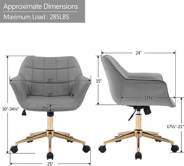 Leisure Style Design: this velvet home office chair with pretty gold metal base combine the traditional and classic style, is perfect for your home office, living room, bedroom or any other decor theme.