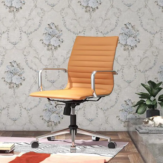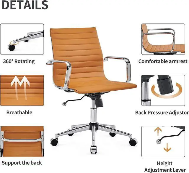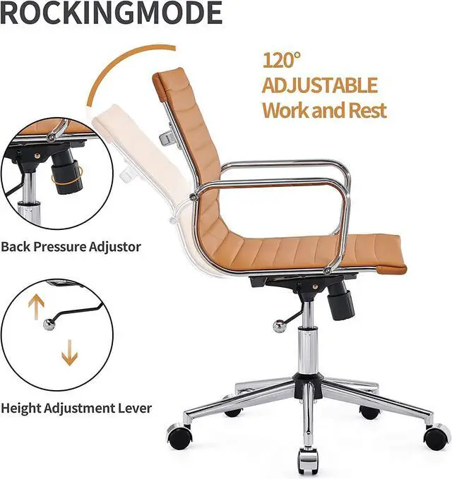 SOLID CONSTRUCTION - 1.8MM thickness steel frame, five-star iron base and thickened wooden seat make LUXMOD ribbed Mid-Back Executive Chair sturdy and durable. Our desk chair is proudly tested and qualified BIFMA standard to sustain up to 320lbs.
