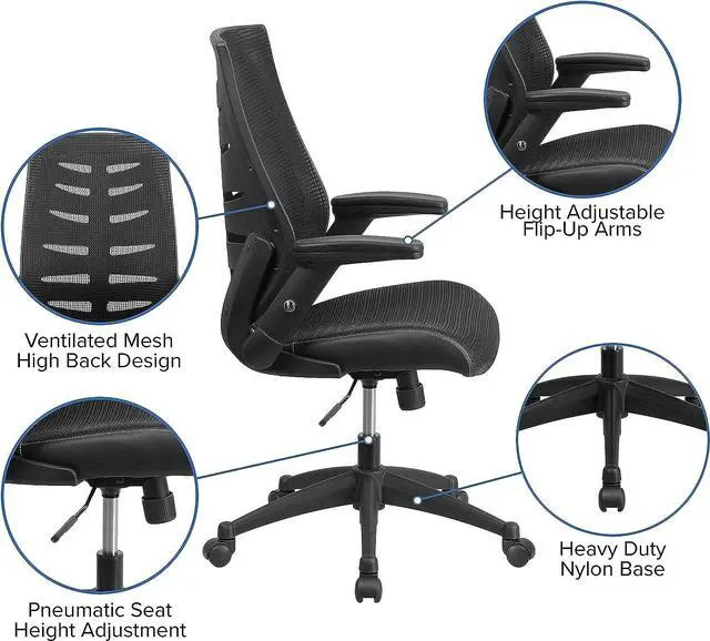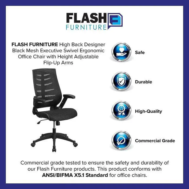Flash Furniture Kale High Back Designer Black Mesh Executive Swivel Ergonomic Office Chair with Height Adjustable Flip-Up Arms