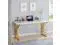 & Reliable:: The tabletop of this white and gold vanity desk is made of 1.97 ' ' extra-thick high-quality environmentally E1 particleboard. The frame of this computer table is made of thick stainless steel tube, which increases its bearing capacity. It is anti-scratch, stain-resistant and water resistant. The Max Weight Capacity is about 250 lbs.