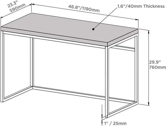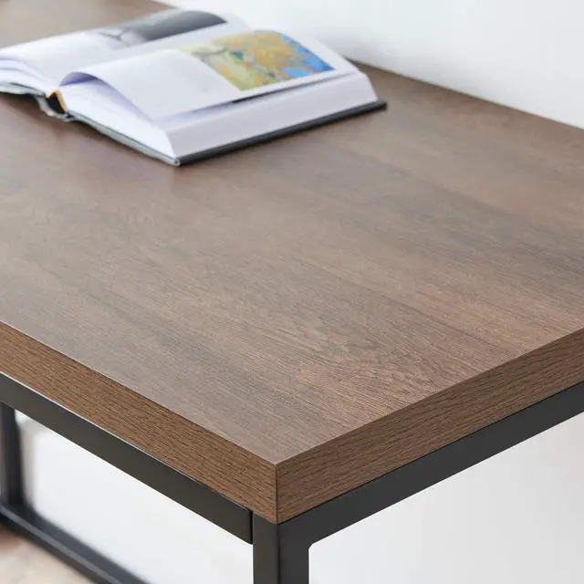 Extra thick 1.6 " tabletop. Top panel is made of 40mm MDF (Middle Density Fiberboard) with frame enhanced structure to avoid bending. Top surface of Dark Oak color with 3D textured melamine finish, rigid and tough, and is hard to get scratches.