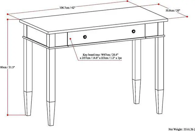Multipurpose desk adds function and style without overwhelming the space. Looks great in your living room, family room, home office, bedroom or condo. Provides plenty of space for office work, studying, writing or gaming