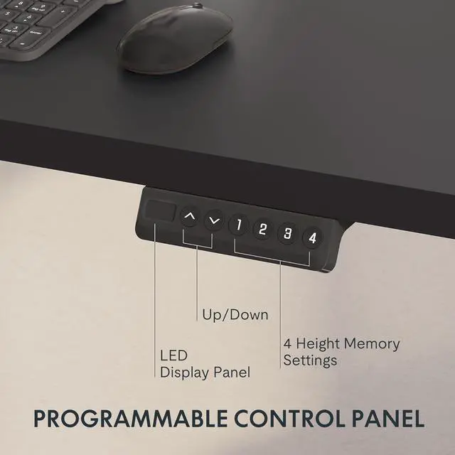 Programmable ControllerProgram your favorite standup desk heights right from the convenient control panel, which lets you assign up to 4 different desk heights to the memory buttons so you can easily switch between standing and sitting positions.