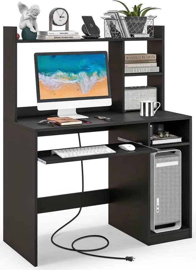 [Ample Storage Space]: The 43.5 spacious desktop will provide ample workspace and allow you enjoy a comfortable and efficient work environment. A roomy CPU stand and convenient slide-out keyboard tray let you enjoy your gaming experience. Meanwhile, open shelves free up more space and give easy to access to your small accessories.