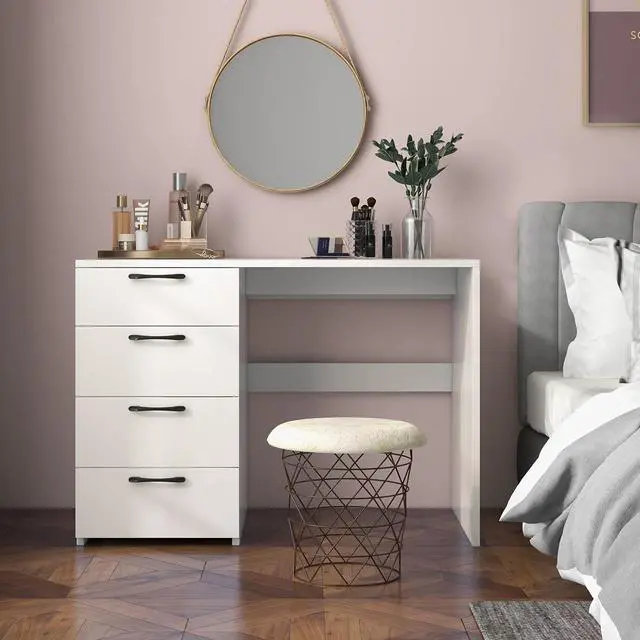 [Modern Look with More Details]: Painted in the pure white, the computer desk looks very simple but stylish. We also offer screw hole stickers to make screws invisible. The study writing desk contains other notable details. Its metal drawer slides make a big difference to ensure easy opening and lower noises.