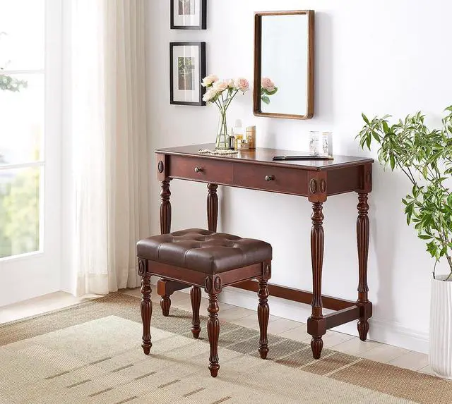 WHAT YOU GET? One traditional and classic computer desk with 2 storage drawers, One beautiful dressing desk with solid wood frame. And All your questions will be answered by our professional customer service. So equip your apartment with this home office desk!
